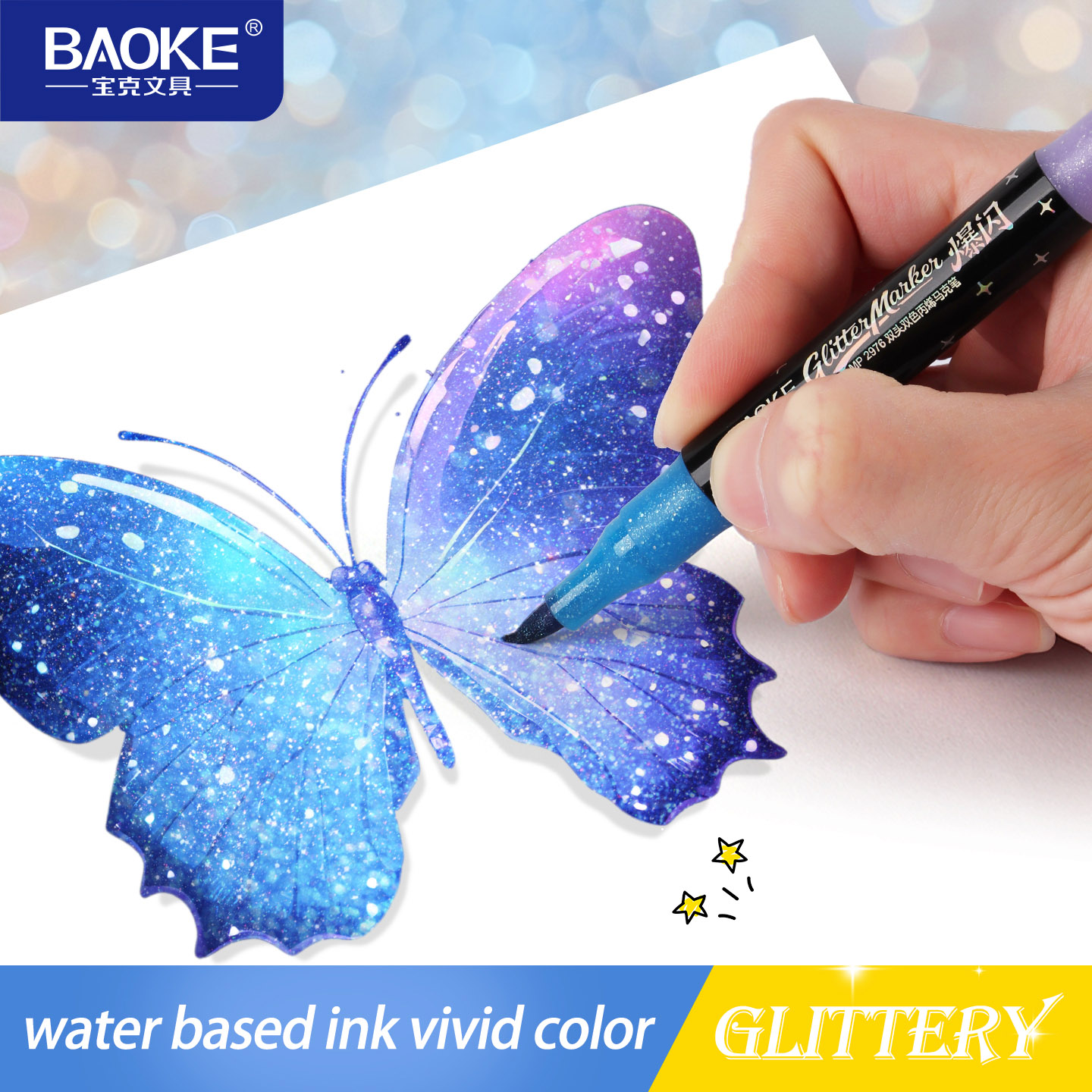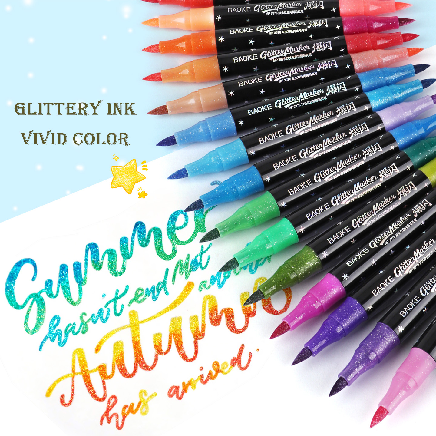 MP2976 Glittery Color Set Dual Tips Double Colors Water Based Ink Acrylic Marker